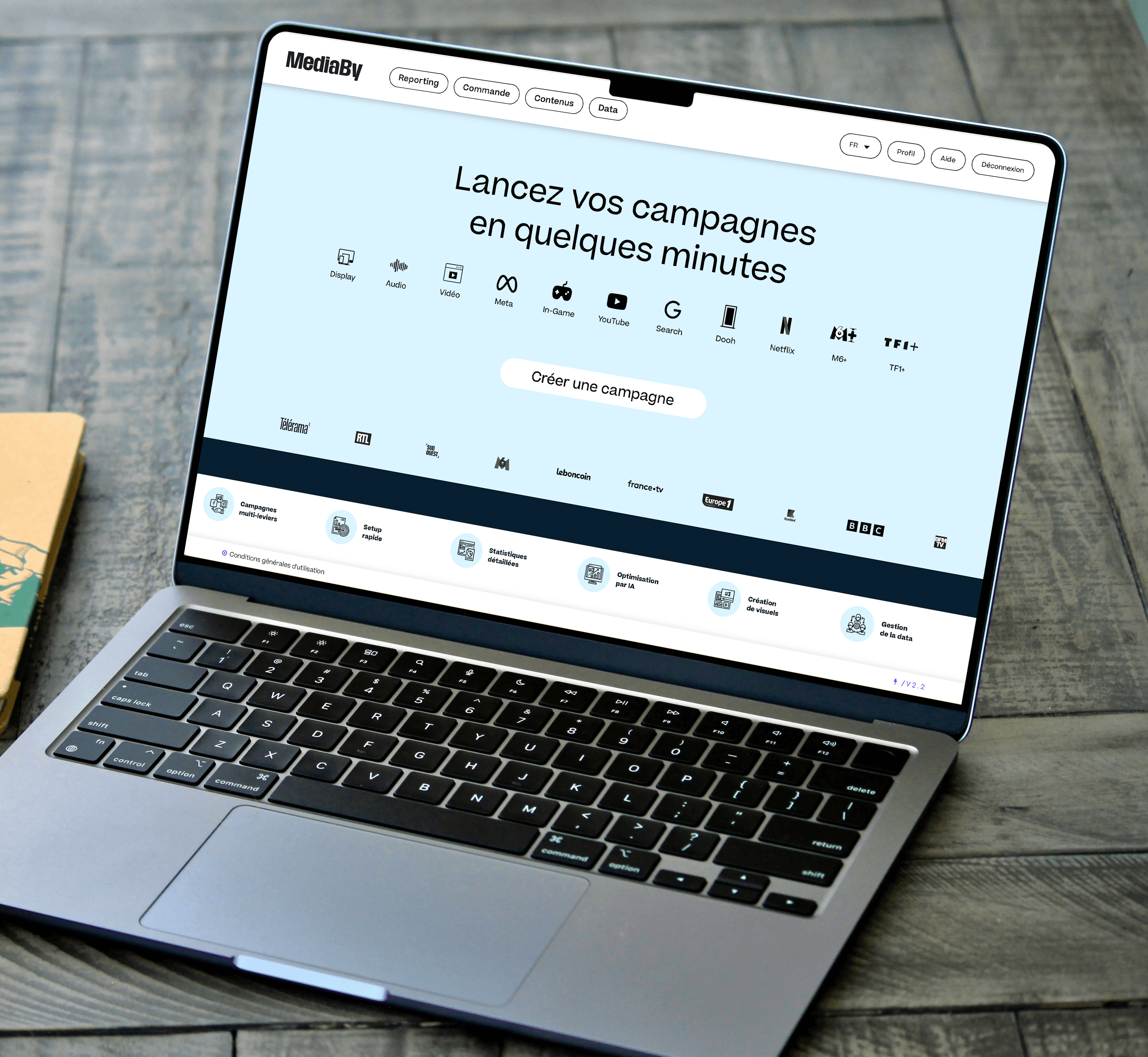MediaBy révolutionne la gestion des campagnes digitales en réunissant simplicité, performance et vision globale : une interface unique et intelligente pour piloter, optimiser et analyser tous vos leviers marketing. Grâce à l’IA et à l’automatisation, vous gagnez en temps et en efficacité, tout en bénéficiant d’une transparence totale sur vos résultats. Avec MediaBy, chaque action s’inscrit dans une stratégie centralisée et évolutive, donnant à votre marketing un nouvel élan, agile et performant.
